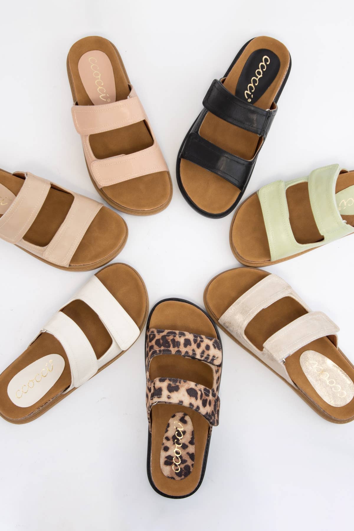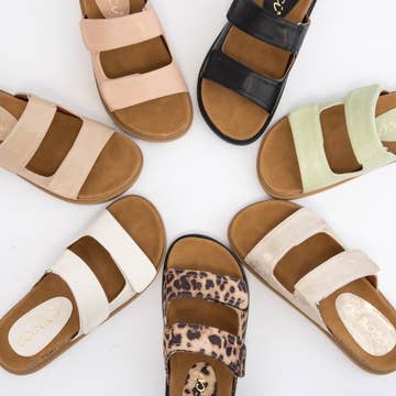 Sandales plates confortables pour femmes avec double boucle et brides ajustables en vente B2B