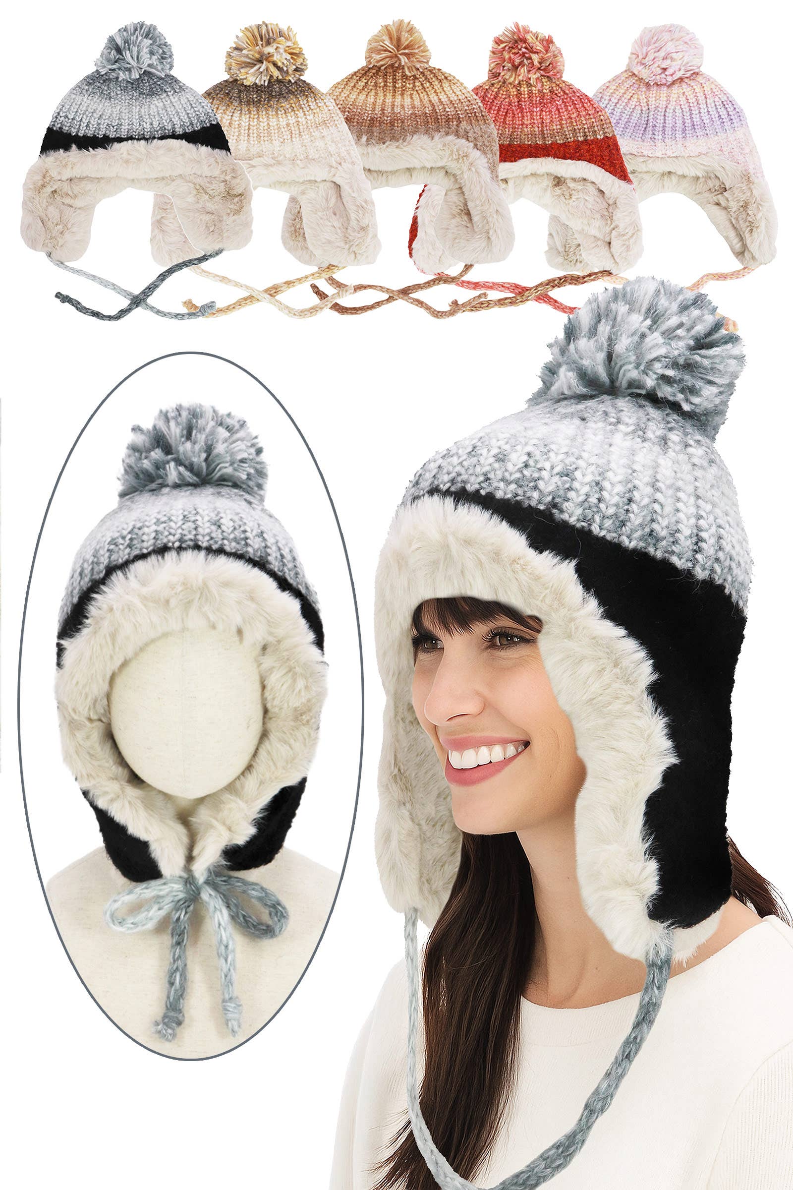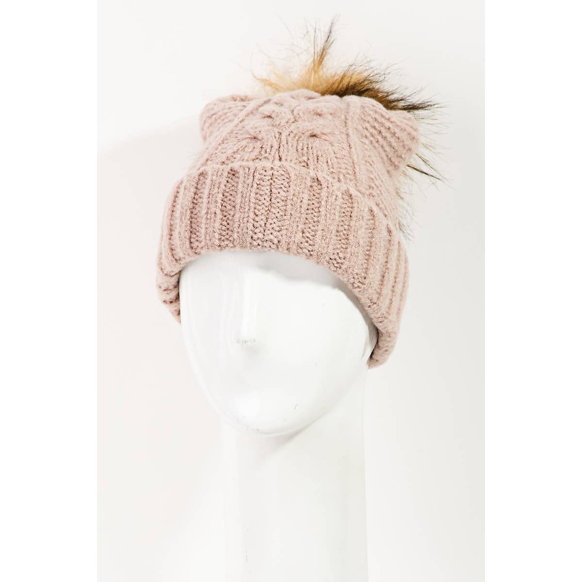 Bonnet en tricot avec pompon en fausse fourrure en vente B2B