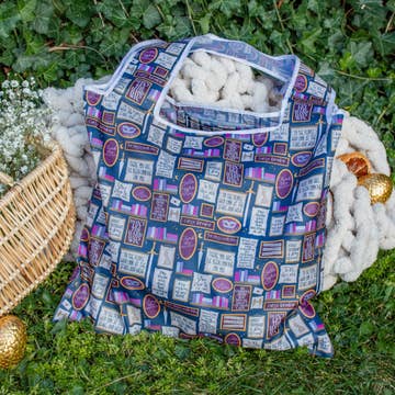 Ces sacs réutilisables ne sont pas seulement pour l'épicerie. Ils vont partout et peuvent transporter presque tout. Présentent les mêmes éléments de design que notre bandana Power Button. - Transporte l'équivalent de 2 à 3 sacs en plastique confortablement à la main ou sur l'épaule - Supporte jusqu'à 50 lbs - Se plie dans sa propre pochette plate de 5" × 5" - Mesure 25 ½" × 15 ½" × 6" - Nylon ripstop
