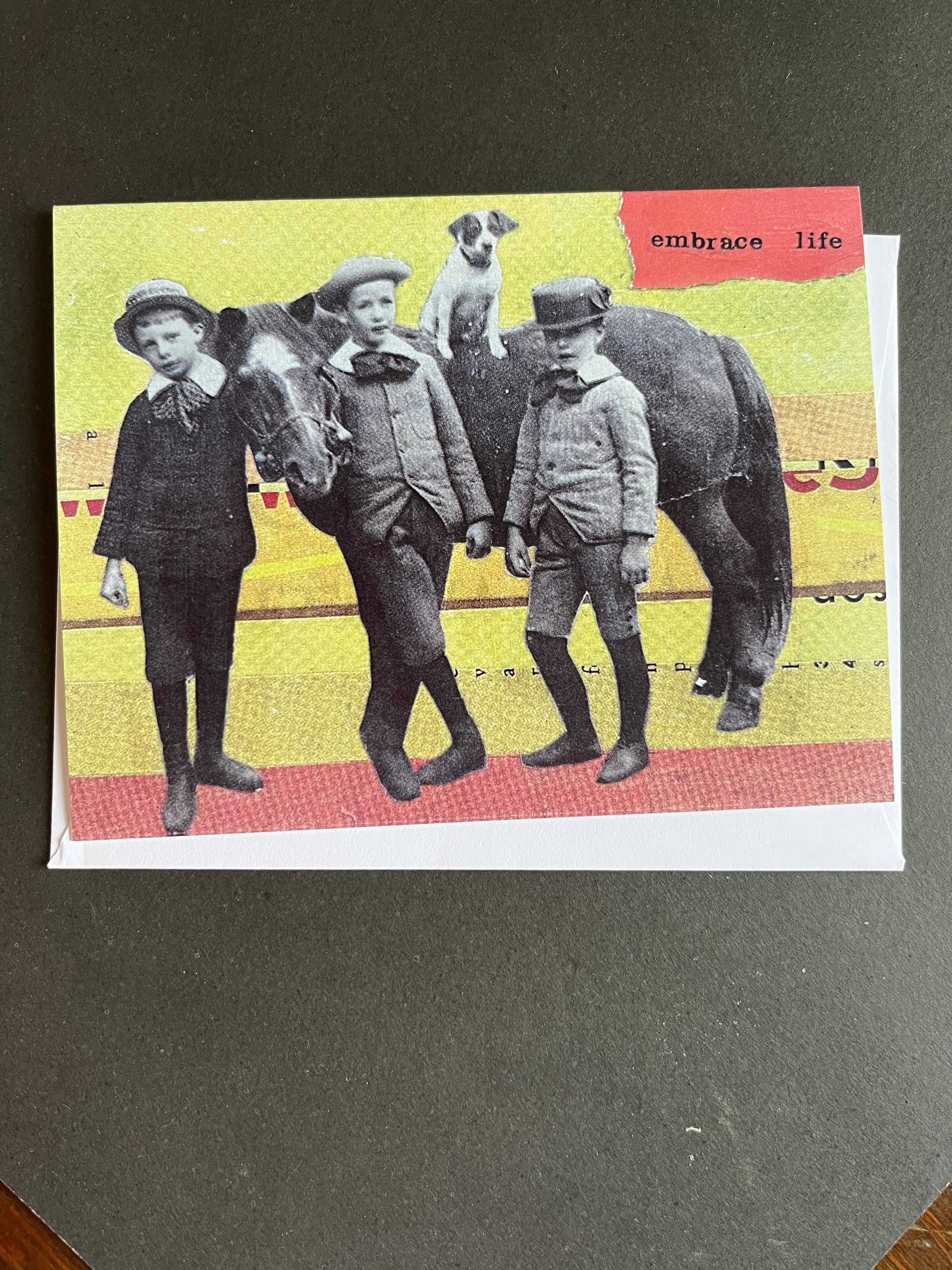 Horses Hurdles ; Bande dessinée amusante ; One More Hurdle, and Then I'll Be Happy ; Philosophie ; Psychologie ; Workaholic ; Équitation ; Amateur de chevaux DÉTAILS DU PRODUIT : Il s'agit d'une carte A-2 (4,25 pouces x 5,5 pouces), imprimée numériquement sur du papier de couverture luxueux 100 % recyclé de 100 livres. L'intérieur de cette carte est vierge. Elle est livrée avec une enveloppe en kraft A-2 100 % recyclée et emballée dans une pochette en plastique transparent.