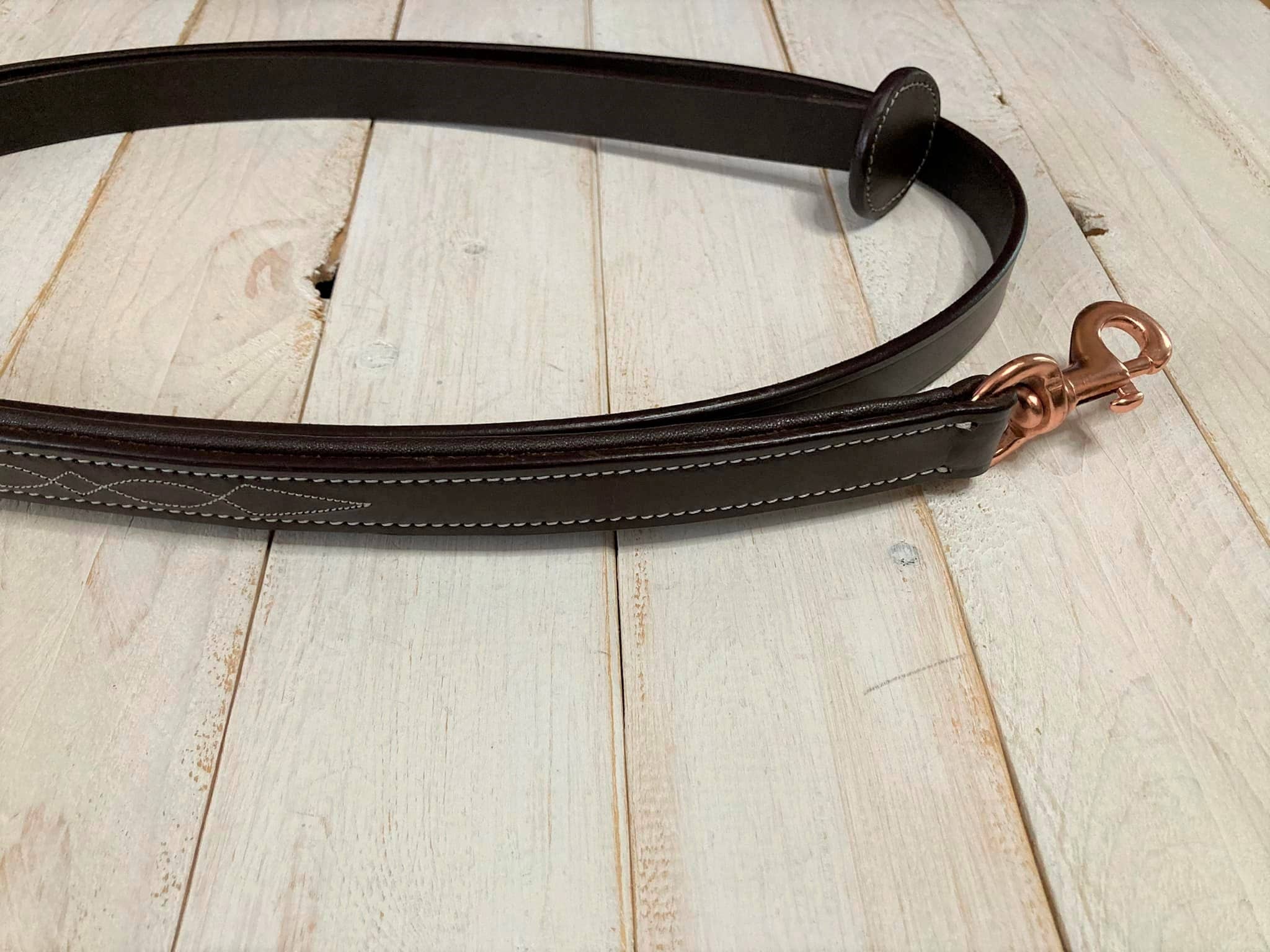 Les poneys ont fière allure avec notre licou de la collection Grand Prix. Ils se démarqueront assurément dans le troupeau grâce à leur cuir verni ultra brillant et lisse, légèrement surélevé. Ce licou a été conçu pour s'accorder avec les brides classiques de dressage, pour que les chevaux soient magnifiques même lors de la préparation aux compétitions. Entièrement doublé de cuir mat doux, il comprend des parties réglables sous le menton ainsi qu'une couronne doublement ajustable pour un confort optimal. Il est aussi équipé d’une têtière roulée en cuir et de ferrures en laiton massif. Dimensions approximatives en pouces : Taille Couronne Joues Nez Largeur Petit poney 22-22,5 4,5-5 10-11 Juste en dessous d’un pouce Poney 23-23,5 5,5-6 11-12 Juste au-dessus d’un pouce Cob 24-24,5 6,5-7,5 12-12,5 Juste au-dessus d’un pouce Plein/Cheval 25-25,5 7,5-8 13 Juste au-dessus d’un pouce Warmblood 25,5-26 8,5-9 14 Juste au-dessus d’un pouce Nos produits sont fabriqués à la main, les mesures peuvent donc légèrement varier d’un article à l’autre.