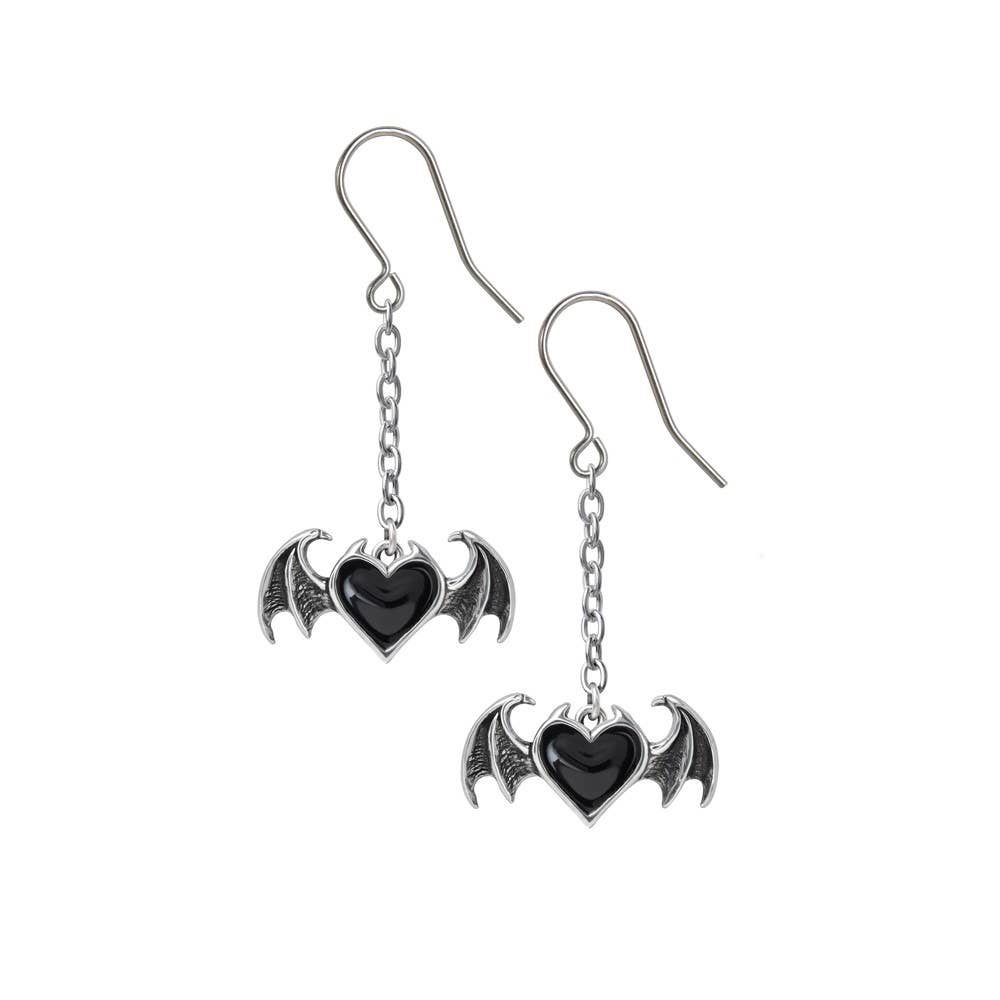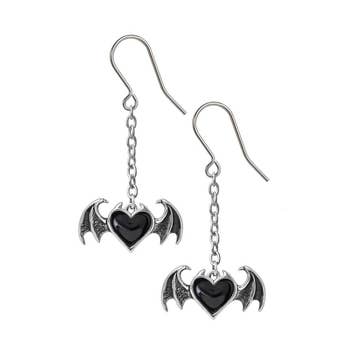 Boucles d'oreilles Halloween Style gothique Motif cœur et chauve-souris Matériau acrylique Dimensions des boucles d'oreilles : 3,5 x 5,7 cm