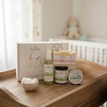 Kit de naissance Nenina & Co : porte-documents, porte-sucette, trousse de toilette, matelas à langer, sac à langer et sucette classique Breat en vente B2B
