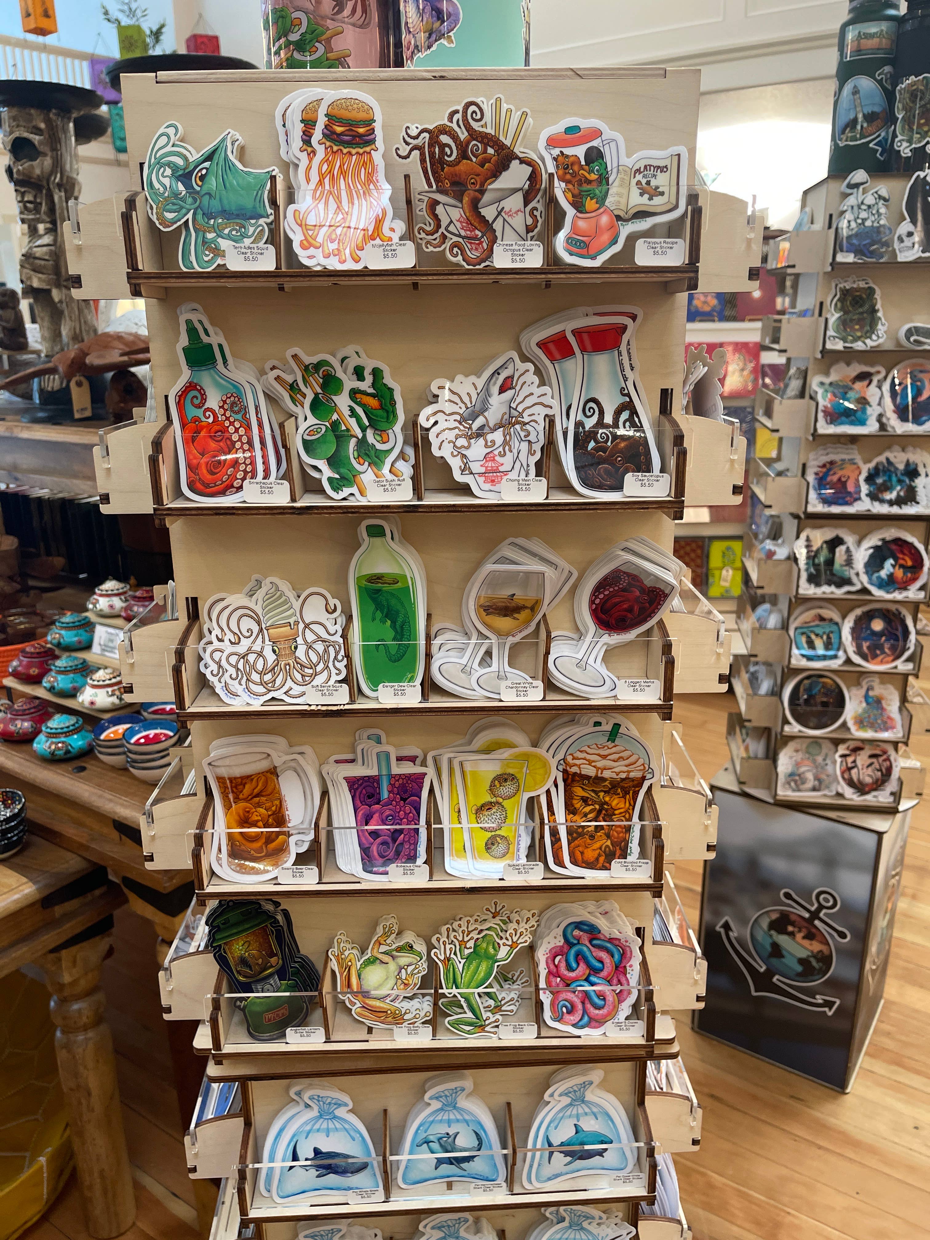 Autocollant transparent : Wok-Topus (poulpe chinois qui aime la cuisine) en vente B2B