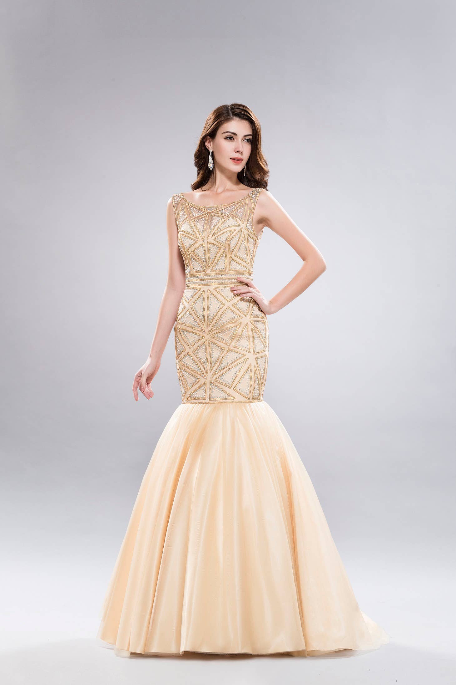 DR0271 Robe de demoiselle d’honneur élégante dorée avec dos nu