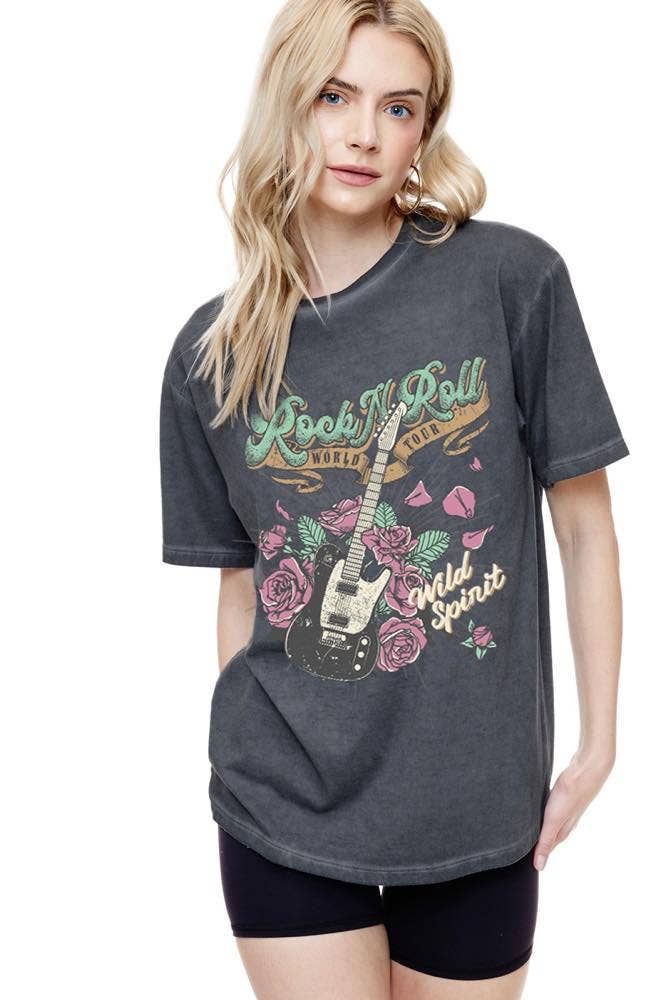 Ce t-shirt graphique présente l'une des chansons les plus emblématiques d'AC/DC « Back In Black » à l'avant, et le graphisme de la tournée « Rock Or Bust American Tour 2016 » à l'arrière. Fabriqué en tissu de coton doux avec des manches retroussées vieilli, un col rond côtelé et une silhouette ajustée.