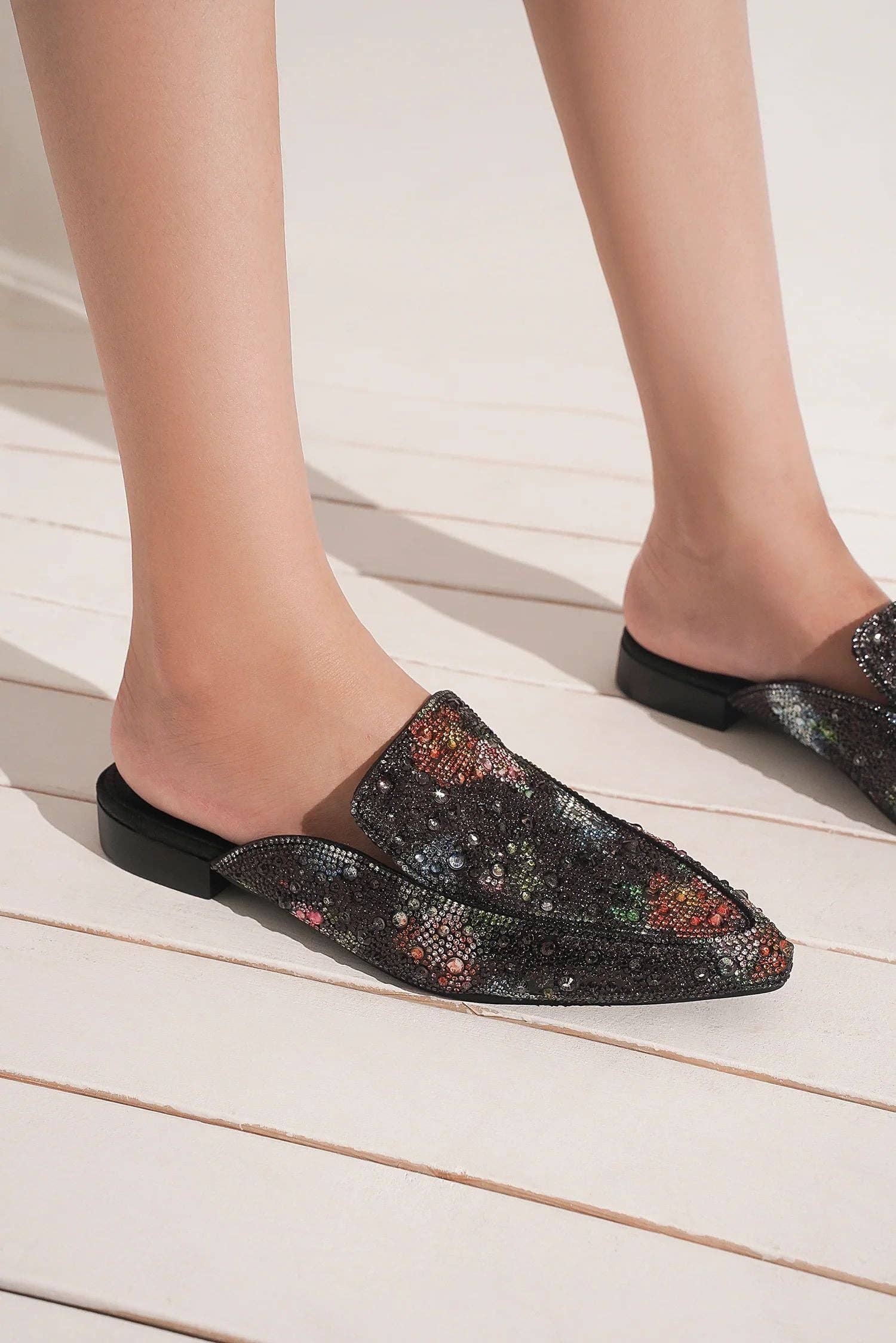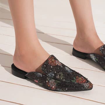 Mules en satin ornées de strass Aldora