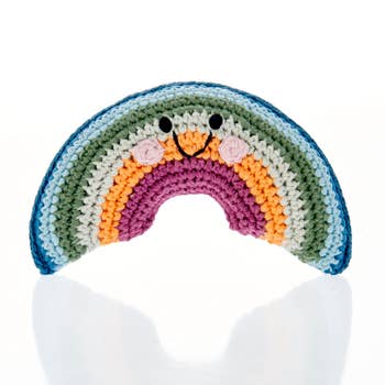 Hochet artisanal en crochet avec anneau en bois de hêtre. Un grelot est incorporé dans le tournesol en crochet, produisant un doux tintement. Très mignon et facile à saisir. Associez ce joli hochet à une attache-sucette, un anneau de dentition ou un doudou pour composer un beau cadeau de naissance !