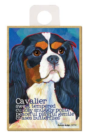 Aimant robuste pour réfrigérateur de 2,5 x 3,5 pouces, fabriqué aux États-Unis. Ce lot de 4 aimants pour chiens spécifiques à une race de chien de Retro Pets, Krista Brooks, représente un magnifique épagneul Cavalier King Charles.