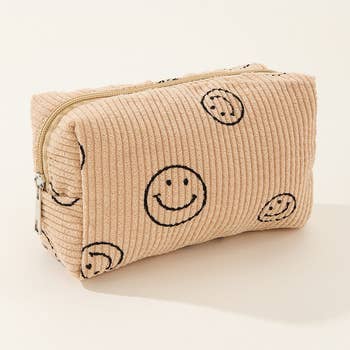 Trousse cosmétique en velours côtelé avec visage souriant en vente B2B