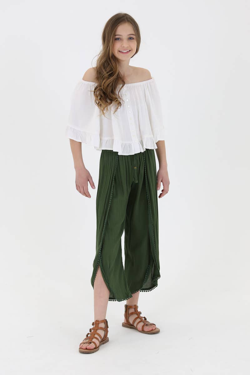 PANTALON COURT UNI À VOLANTS SP1020S