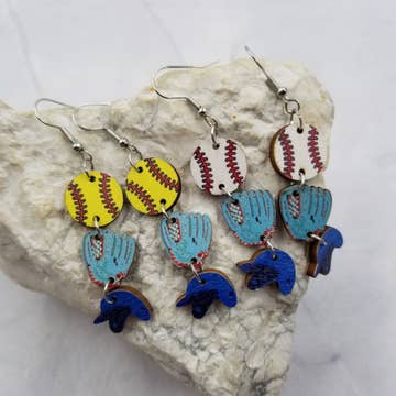 Boucles d'oreilles en jersey de baseball en acrylique Bananas en vente B2B