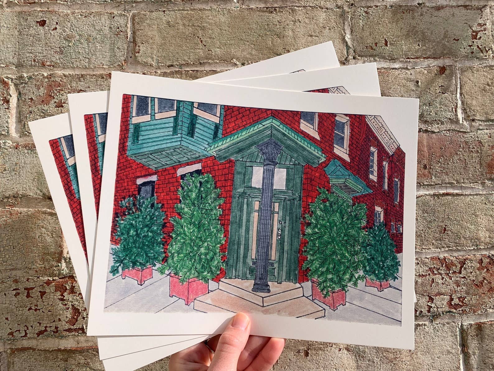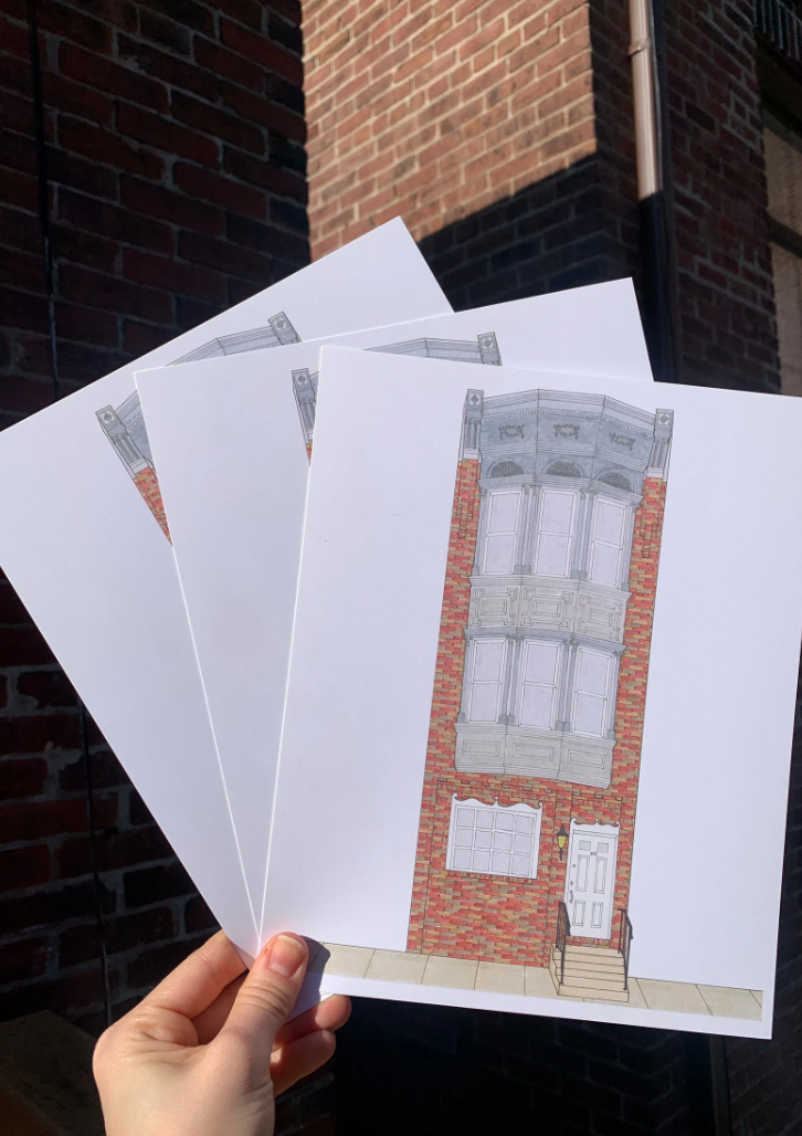 Cette impression de 8 « x10" présente une maison en rangée dans le sud de Philadelphie. Ceci est une impression d'un dessin original dessiné à la main à la plume et à l'encre. C'est une maison classique de South Philly avec la combinaison de parements et de briques sur la façade de la maison ! Ces impressions sont imprimées de manière experte par Fireball Printing à Philadelphie sur du papier de 120 lb. Chaque impression est emballée individuellement à l'intérieur d'une pochette en plastique, avec un dos en aggloméré derrière l'impression et une carte de visite cachée à l'arrière.