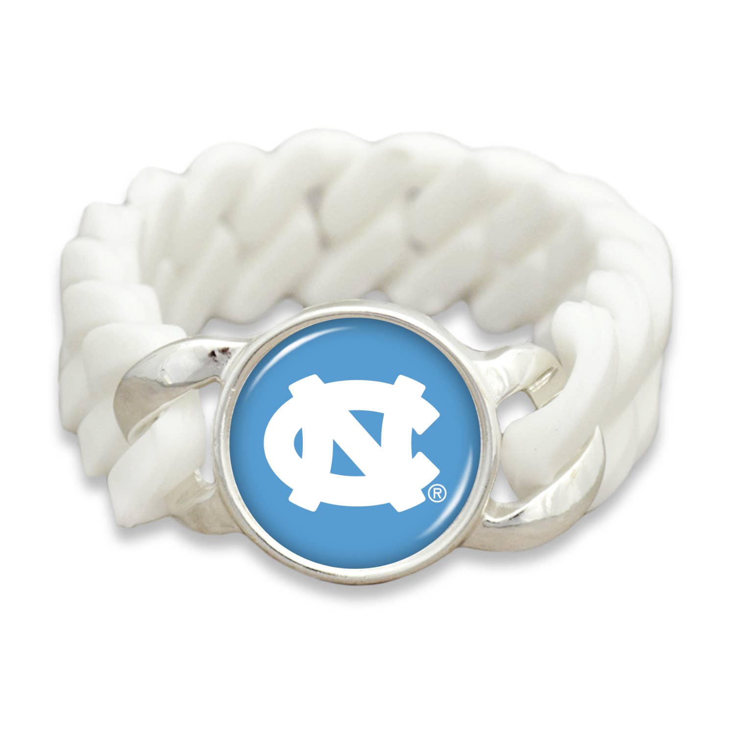 Bracelet portefeuille en métal argenté orné de strass, de perles et d'émail bleu clair orné de perles en imitation de perles et du slogan « Tar Heels ». Il s'agit d'un produit sous licence officielle.