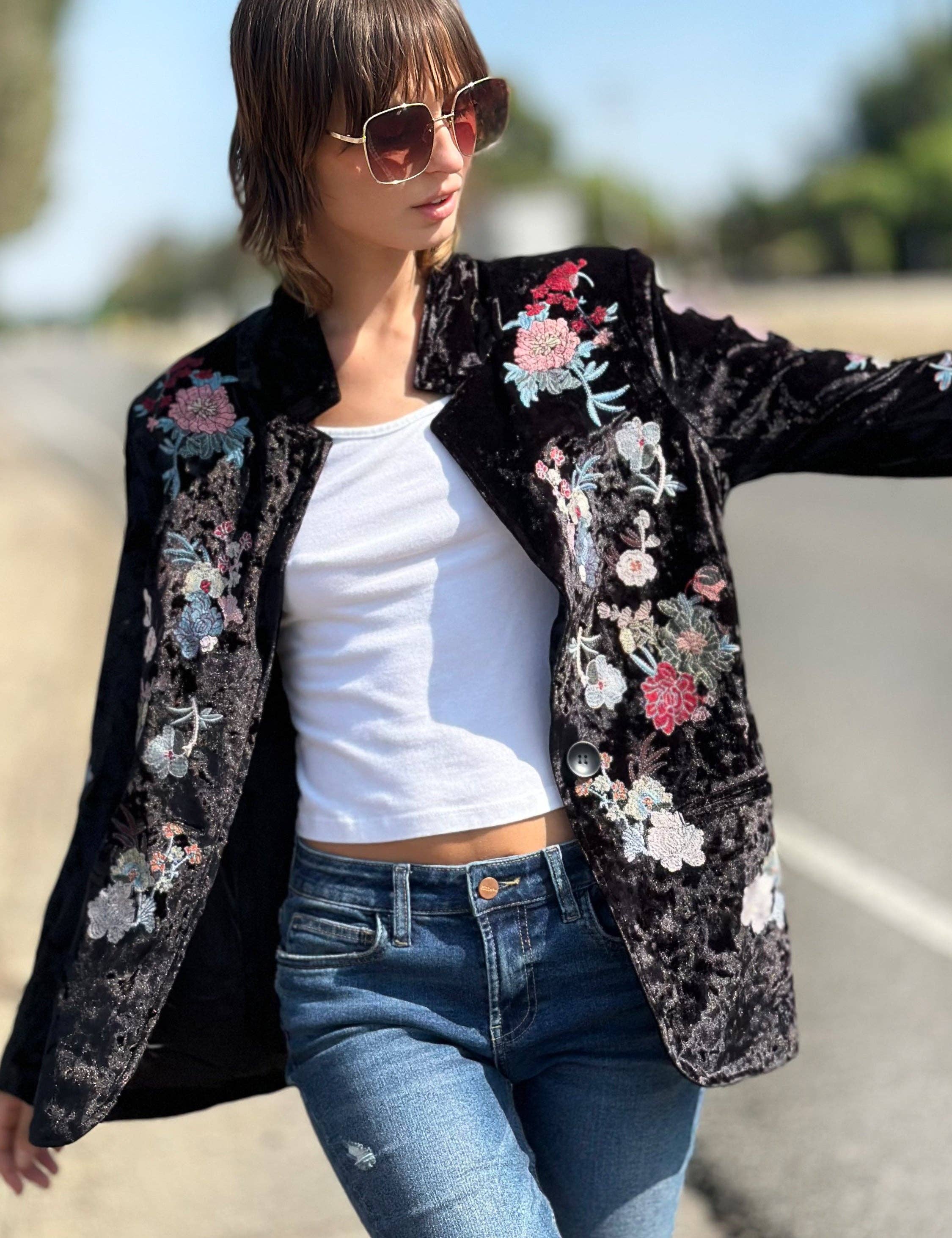 Magnifique blazer avec revers et col noirs remarquables. Procurez-vous le tailleur-pantalon assorti dans la même couleur bleu glacé pour compléter le look. Ce blazer n'est pas extensible et a tendance à être petit.