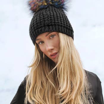 Bonnet à pompon en tricot à double fourrure en marron en vente B2B
