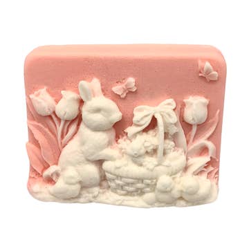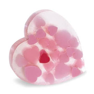 2 oz. Ingrédients : savon à la glycérine, poudre de mica. Parfum : lavande pour le violet, lettres d'amour pour le rose, turquoise pour le vert Chaque barre env. : 2,5" × 1,75" × 1".