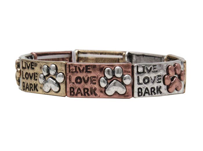 Chaque bracelet est unique mais donne l'illusion de trois. Exclusif pour nous, ce bracelet dispose également d'un breloque 100 % étain américain et est extensible de 17,8 cm à 20,3 cm, ce qui en fait une taille unique.