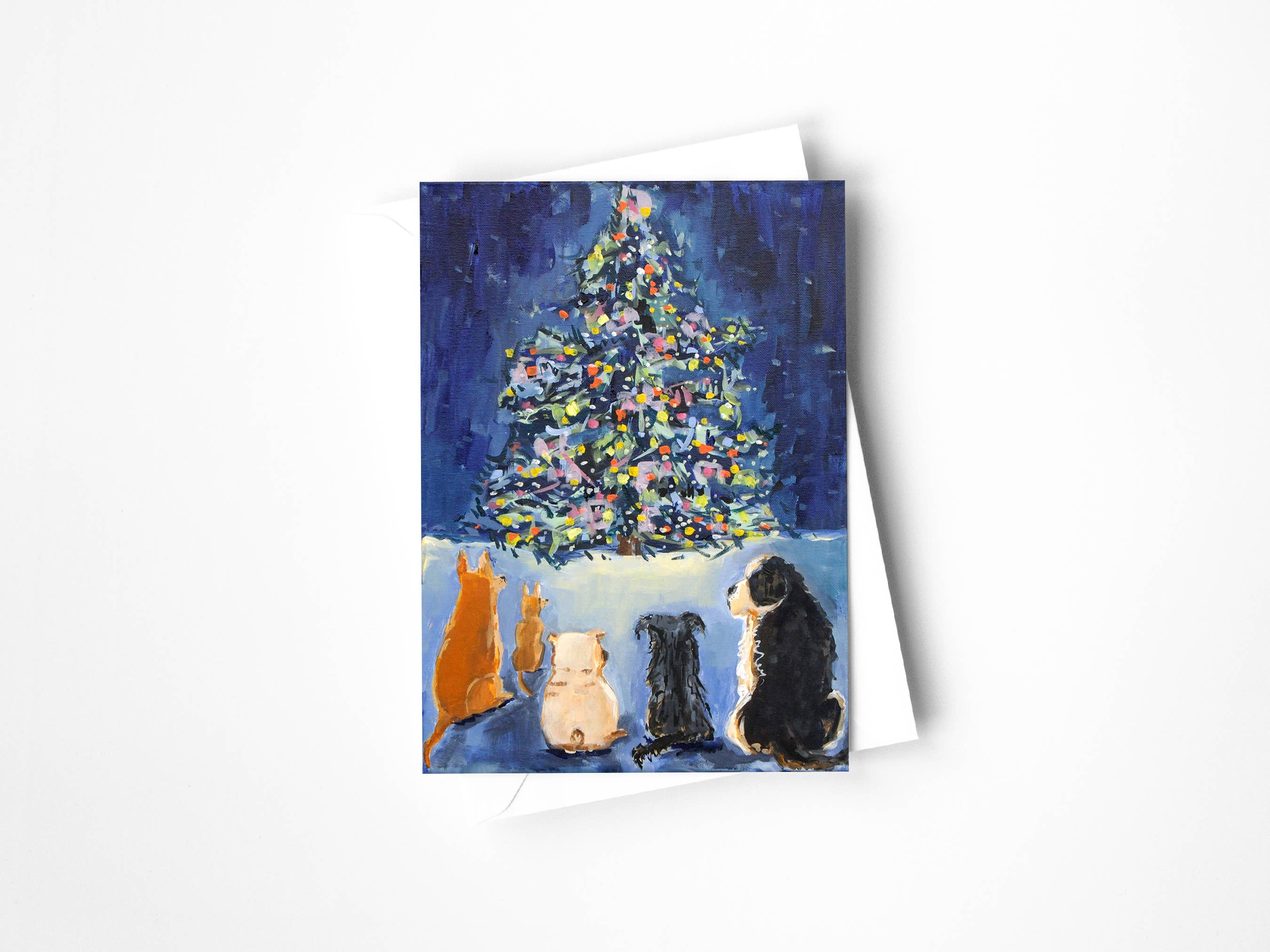 "et à tous une bonne nuit" il n'y a rien de tel qu'un feu crépitant, un sapin de Noël et quelques animaux endormis pour ressentir l'esprit des fêtes. Carte de vœux format A2, vierge à l'intérieur pour votre message personnel. Papier 100 % recyclé, fabriqué aux États-Unis. Disponible à l'unité ou en coffret de 8 cartes.