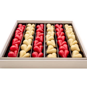 Ces magnifiques et uniques paniers-cadeaux sont emballés dans un plateau/panier à thème de la Saint-Valentin en carton kraft robuste, rempli de frisure blanche/iridescente. Les articles sont emballés individuellement puis fixés en place avec du film rétractable avant que le panier ne soit ensaché. Un nœud rouge vif complète le look ! Une variété de chocolats au lait, noirs et blancs est incluse. Le panier-cadeau comprend : - 6 truffes au chocolat de la taille d'une bouchée (champagne, framboise, amaretto, cappuccino) - 1 biscuit cœur 'Love' en glaçage royal avec découpe de cœur en bonbon (10 cm) - 1 sucette en chocolat en forme de cœur - 1 friandise Rice Krispie trempée dans le chocolat - 1 double guimauve géante enrobée de chocolat - 2 bâtonnets de bretzel trempés dans le chocolat - 2 Oreos enrobés de chocolat Les friandises sont disponibles dans une variété de designs. Elles peuvent ne pas correspondre exactement aux images mais seront similaires et correspondront au thème. Durée de conservation : environ 6 semaines, jusqu'à 6 mois congelé.