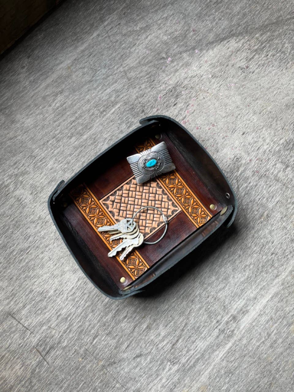 Plateau en cuir estampé à bordure 9x7 Western Catchall Valet en vente B2B
