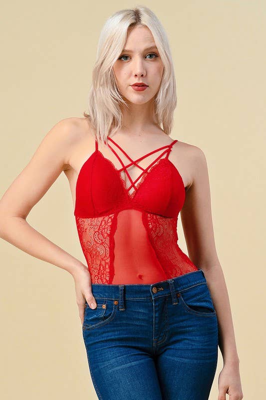 Un body espiègle à bonnets ouverts avec des détails de nœuds ludiques, des bretelles réglables et une fermeture à agrafes à l'entrejambe. Parfait pour augmenter le charme.