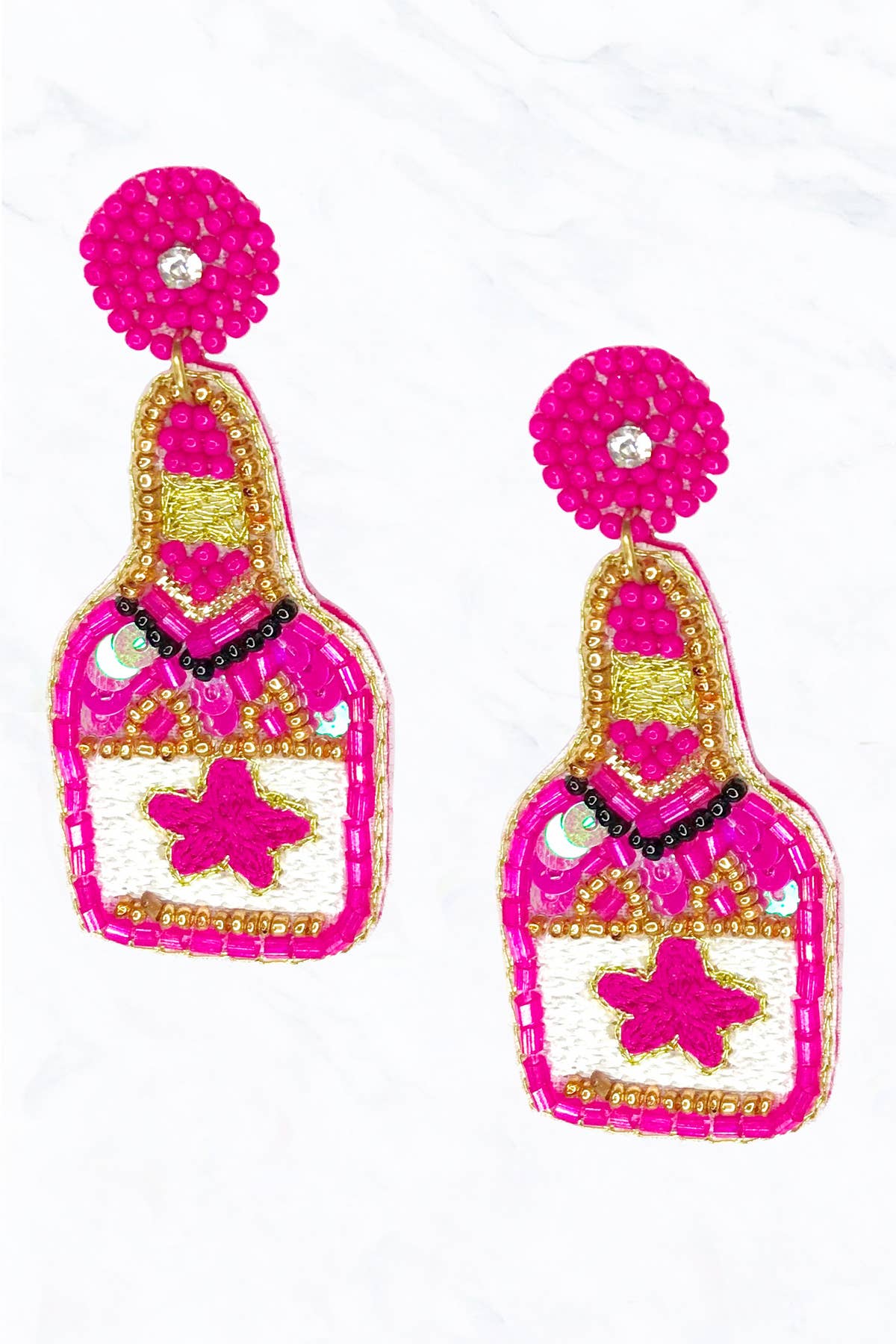 Offrez-vous une touche de mode unique avec les boucles d'oreilles en tequila d'Allie Beads. Ces boucles d'oreilles perlées à la main, en forme de bouteilles de cocktail, sont un accessoire amusant et ludique qui reflète l'amour de la marque pour les bijoux uniques fabriqués à la main. Créées par un duo mère-fille passionné de mode, ces boucles d'oreilles sont un mélange parfait d'idées jeunes et fraîches et de style sophistiqué. Véritable source de conversation, ces boucles d'oreilles ajoutent une touche de fantaisie à n'importe quelle tenue. Profitez du mélange de créativité et de style qu'Allie Beads apporte à chaque pièce.