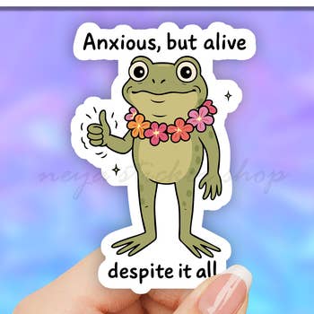 Autocollant antidépresseur en forme de grenouille, 3 po en vente B2B