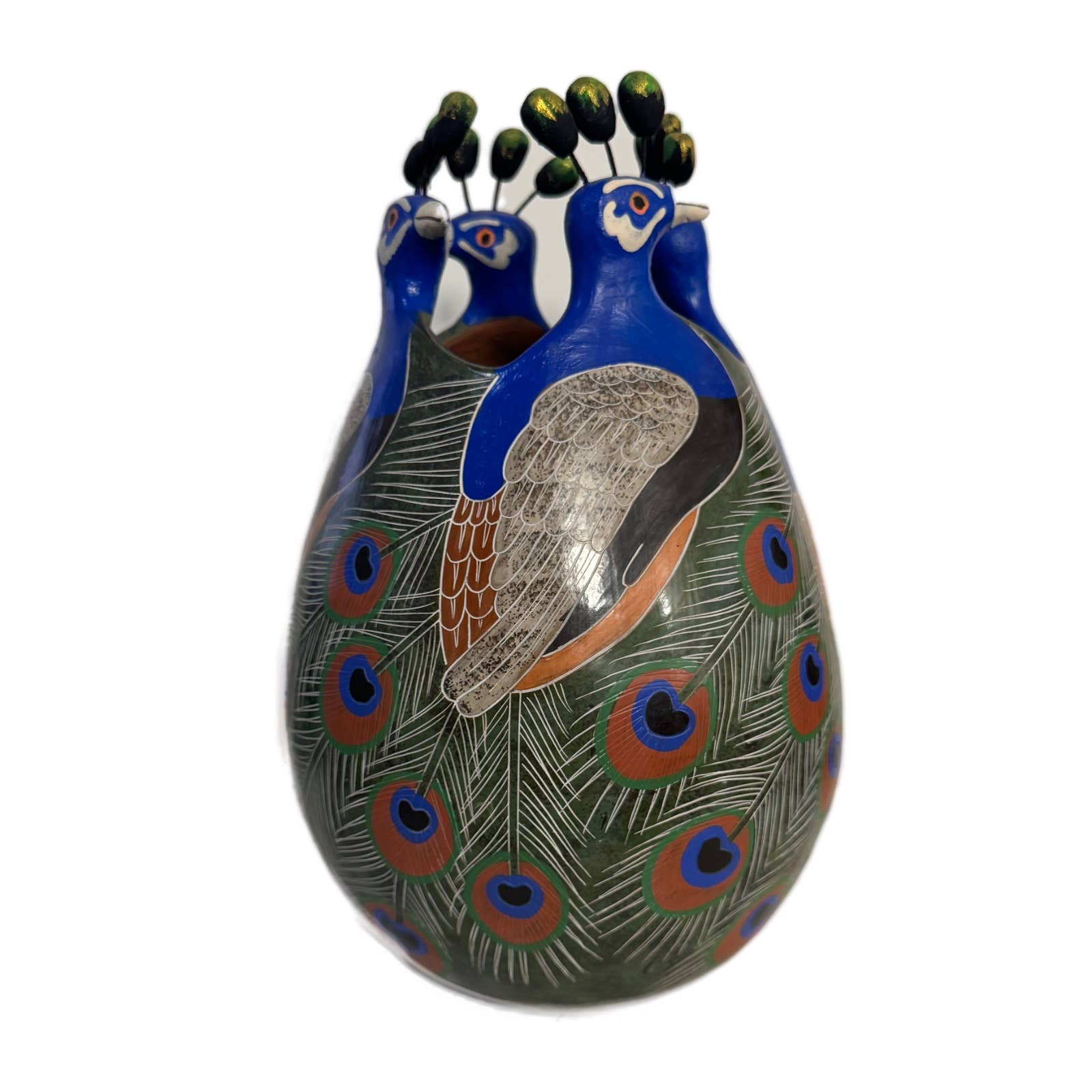 Tirelire en gourde sculptée à la main, artisanale avec modèles variés, fabriquée au Pérou. Les gourdes offrent une infinité d'utilisations ! Cette fois, elles sont transformées en tirelires avec un bouchon en bois au bas pour récupérer facilement votre argent. Chaque pièce mesure entre 9 et 13 cm, unique par sa taille et sa forme. Divers motifs sont proposés. Notre méthode de création artistique respecte l'environnement : nous utilisons des teintures végétales, des lacets de cuir recyclés et des outils manuels. Chaque objet est fabriqué et peint à la main, avec une forme unique de gourde, ce qui peut entraîner de légères variations par rapport aux photos. Cependant, nous garantissons la même qualité et esthétique dans toute notre production. Ces ornements uniques sont conçus et sculptés par un artisan. Les gourdes séchées sont préalablement bouillies dans des teintures naturelles avant la gravure, offrant ainsi des pièces précieuses pour décorer différentes zones de votre intérieur.