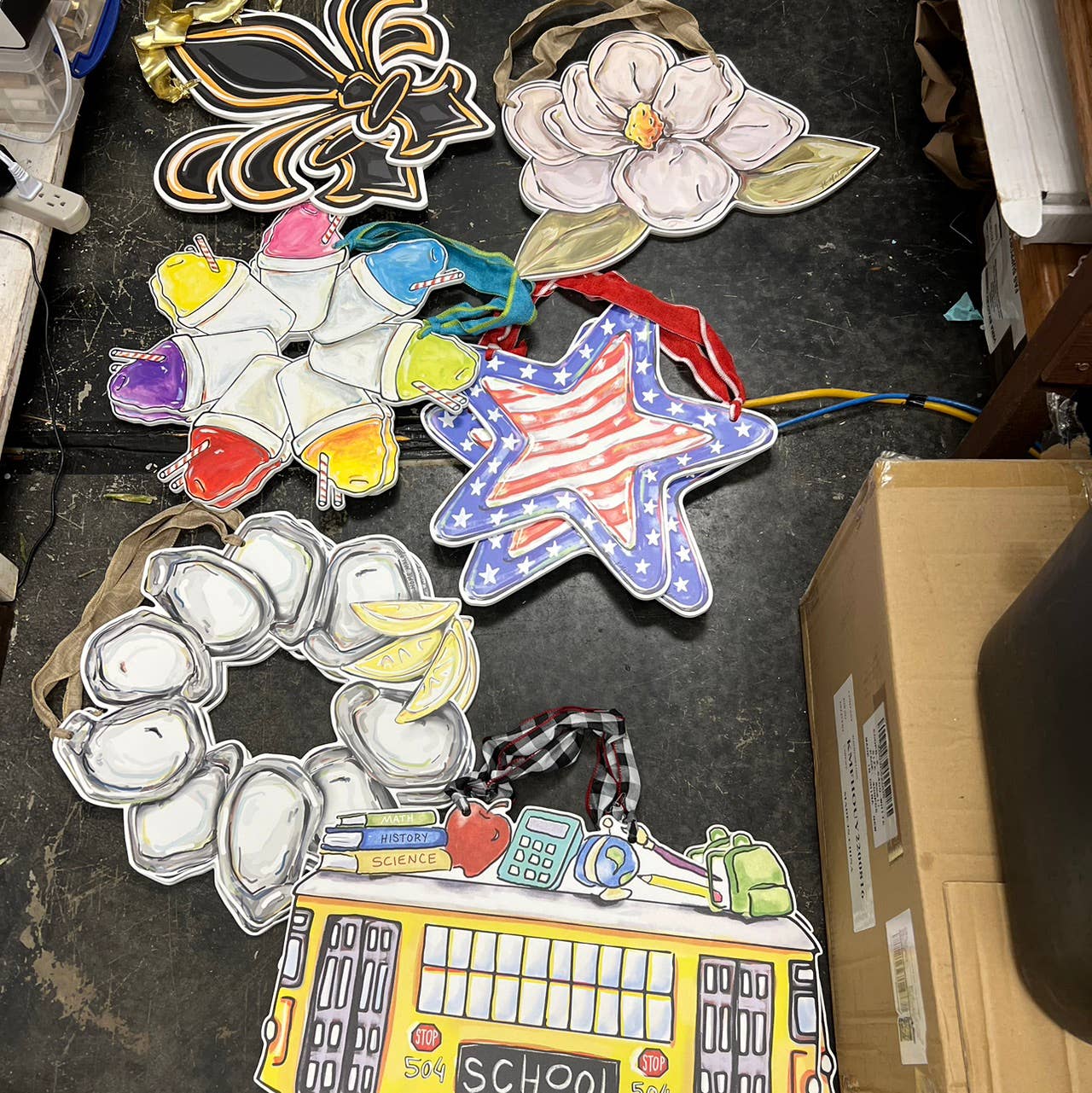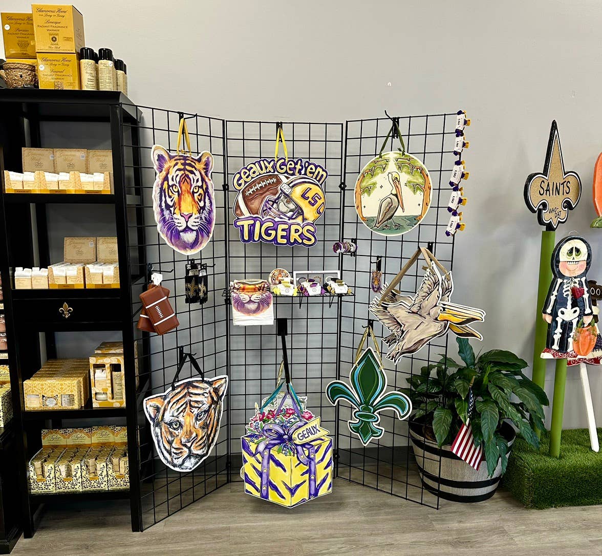 Cintre de porte Magnolia : imperméable et résistant à la décoloration *impression sur une planche en plastique de la peinture magnolia de l'artiste de la Nouvelle-Orléans Kristin Malone. Le cintre de porte est fabriqué en PVC et mesure 20" de large x 13,5 po de haut x 1/4" d'épaisseur. Livré avec un ruban naturel avec coutures latérales vertes pour une hauteur de suspension totale de 17". Peut être affiché à l'intérieur et à l'extérieur. Conçu et produit à La Nouvelle-Orléans, La. Veuillez noter que tout changement extrême de température peut provoquer une distorsion de ce cintre de porte. Cela comprend des températures inférieures au point de congélation et des températures de chaleur anormalement élevées. Par exemple, si vous avez une porte métallique qui est à la lumière directe du soleil pendant l'été, la chaleur excessive peut provoquer la déformation du plastique.