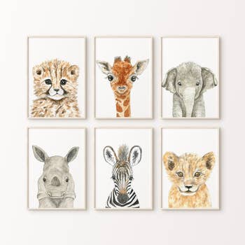 Ensemble de 3 gravures murales pour chambre d'enfant de la collection Safari Animal en vente B2B