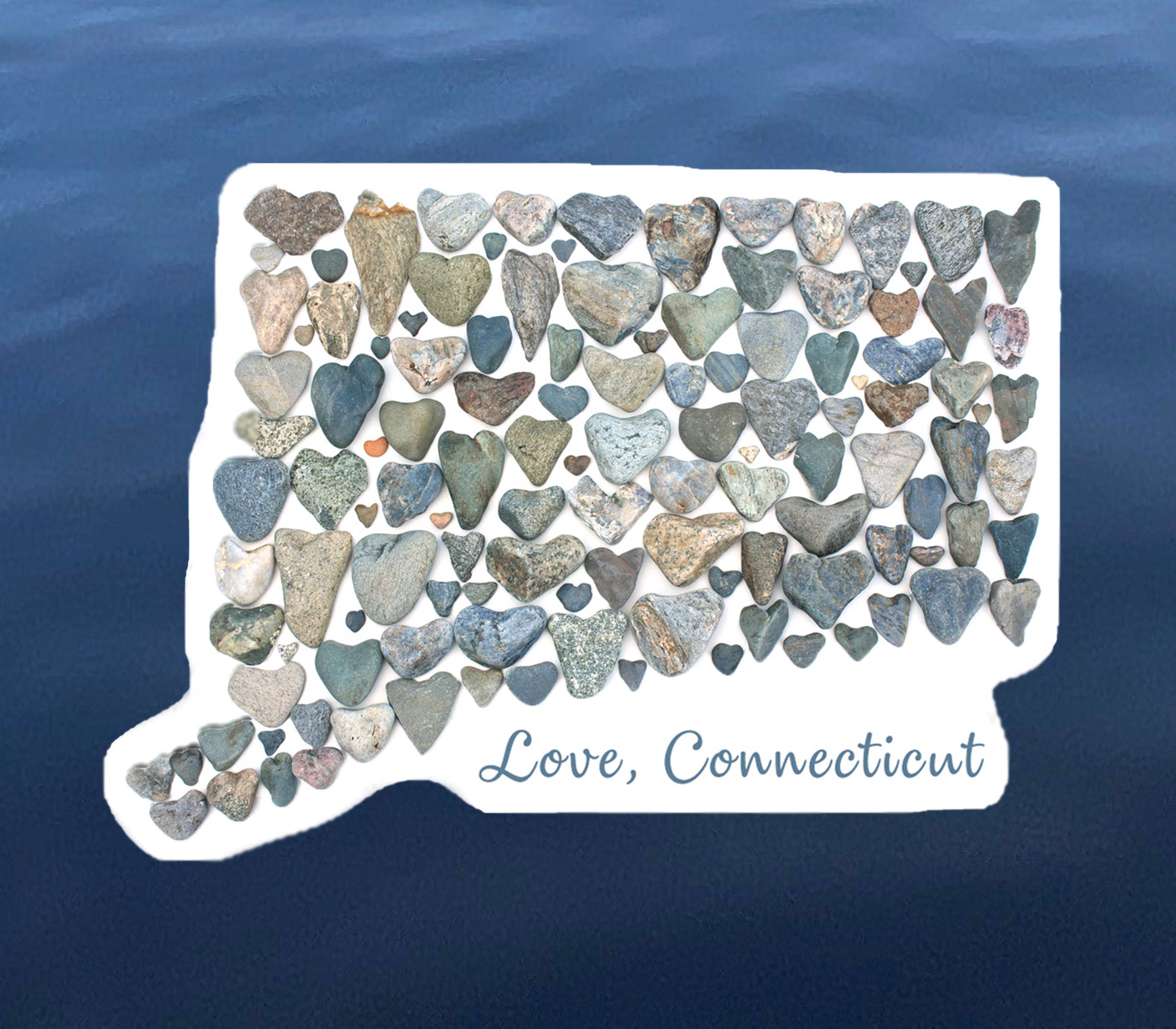 • Aimants en acrylique substantiels de 3 5/8 x 2 7/8 pouces avec une profondeur de 1/3 pouce • Fabriqué en Nouvelle-Angleterre et emballé dans des sacs à suspendre en cellophane • Étiquette au dos portant l'inscription SKU : Conçu à partir de la collection de l'artiste composée de pierres en forme de cœur façonnées par les vagues le long de la côte du Maine