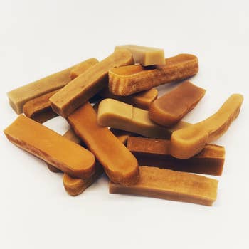 Chewing-gums naturels de yak de l'Himalaya dans une boîte de présentation Merlin's Magic de 2,27 kg. Ce produit contient du lait de yak, du lait de vache, du jus de citron vert et une pincée de sel. Fabriqué à la main au Népal. Disponible en tailles moyenne, grande, très grande et extra très grande. - Les tailles moyennes pèsent en moyenne 71 g. - Les grandes pèsent en moyenne 99 g. - Les très grandes pèsent en moyenne 156 g. - Les extra très grandes pèsent en moyenne 213 g.