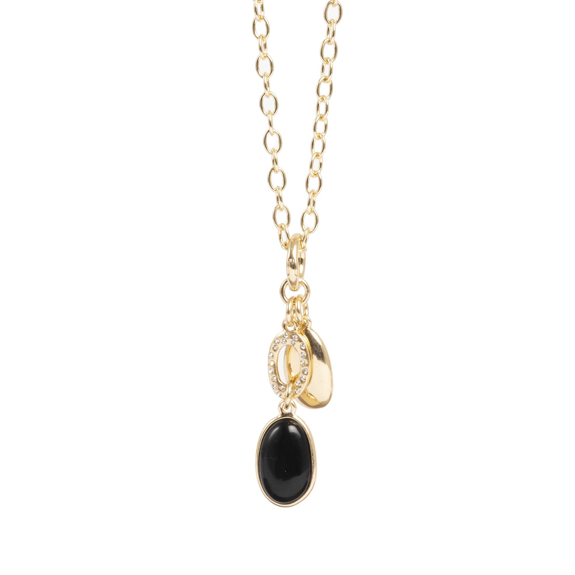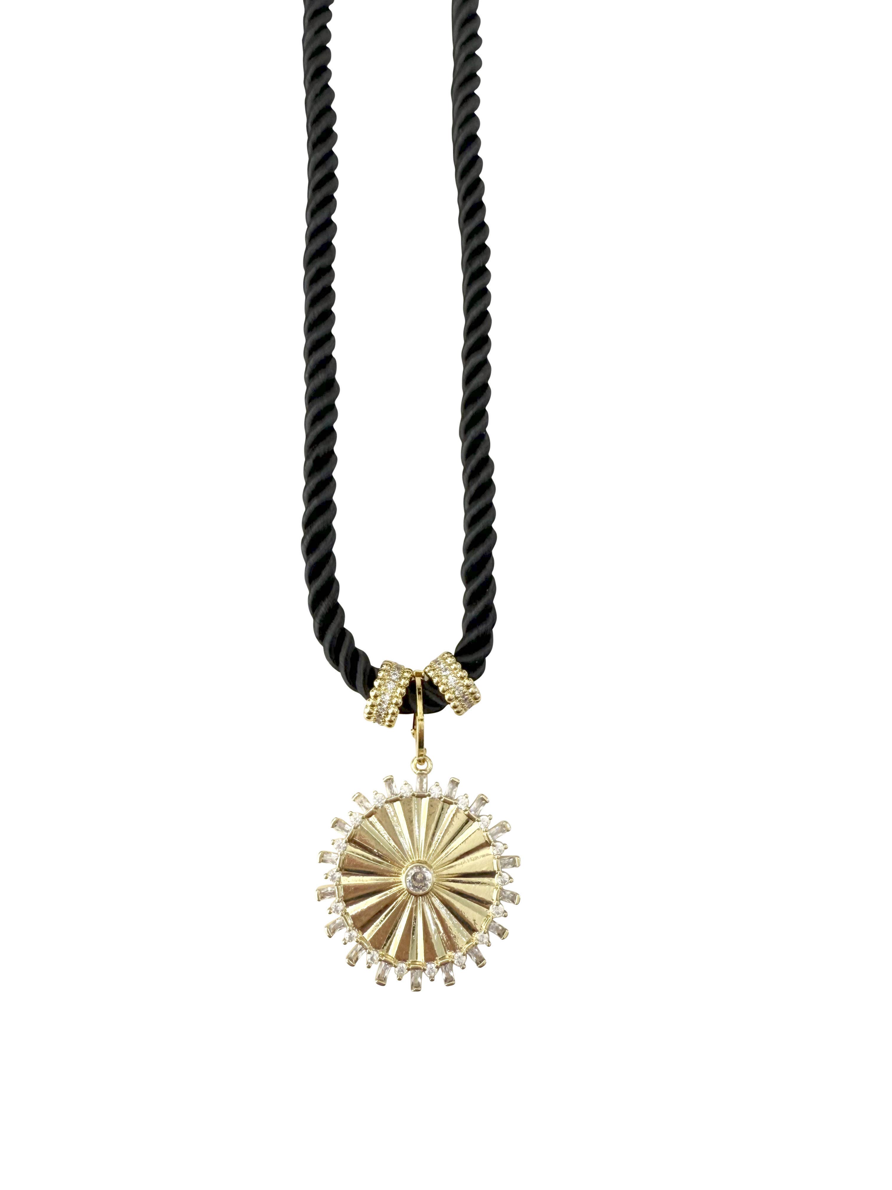 Collier avec pendentif Finn plaqué or 14 carats de 3,4 mm avec cadran solaire, poisson émaillé noir Marin et breloques Dottie en CZ noir. Entièrement ajustable jusqu'à 22" de longueur.