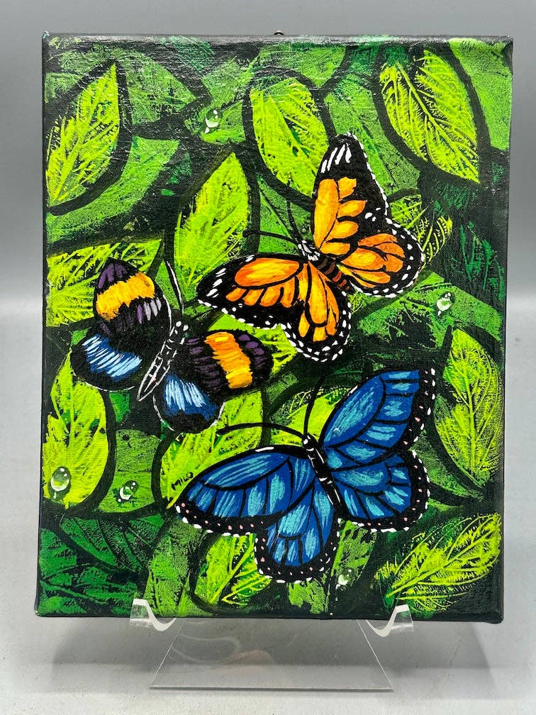 Une tortue peinte à la main se détache gracieusement sur un bois de planche blanc vieilli, ses textures patinées ajoutant un charme rustique à l'arrière-plan. La tortue prend vie avec des coups de pinceau complexes et une palette de couleurs éclatante : verts émeraude, bleus sarcelles profonds, ors chauds et bruns terreux. Sa carapace affiche une mosaïque naturelle, mélangeant des teintes qui imitent les nuances de l'océan, tandis que les détails réalistes de ses membres rehaussent son élégance. Une couche de verre de mer clair recouvre la peinture, créant un effet 3D époustouflant. Ce verre translucide magnifie les couleurs vibrantes de la tortue et ajoute de la profondeur, alors que la lumière se reflète sur ses bords irréguliers. L'agencement du verre de mer semble organique et côtier, complétant le bois rustique tout en apportant une touche de couleur moderne et lumineuse à l'œuvre.