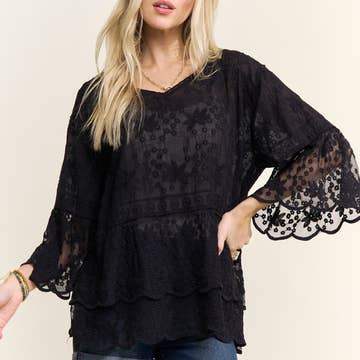 HAUT EN DENTELLE À COL EN V ET MANCHES COUDÉES DE GRANDE TAILLE G9018250PX EN VENTE B2B
