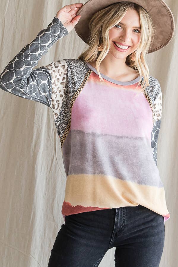 Top mixte à imprimé animalier à sequins contrastés en vente B2B