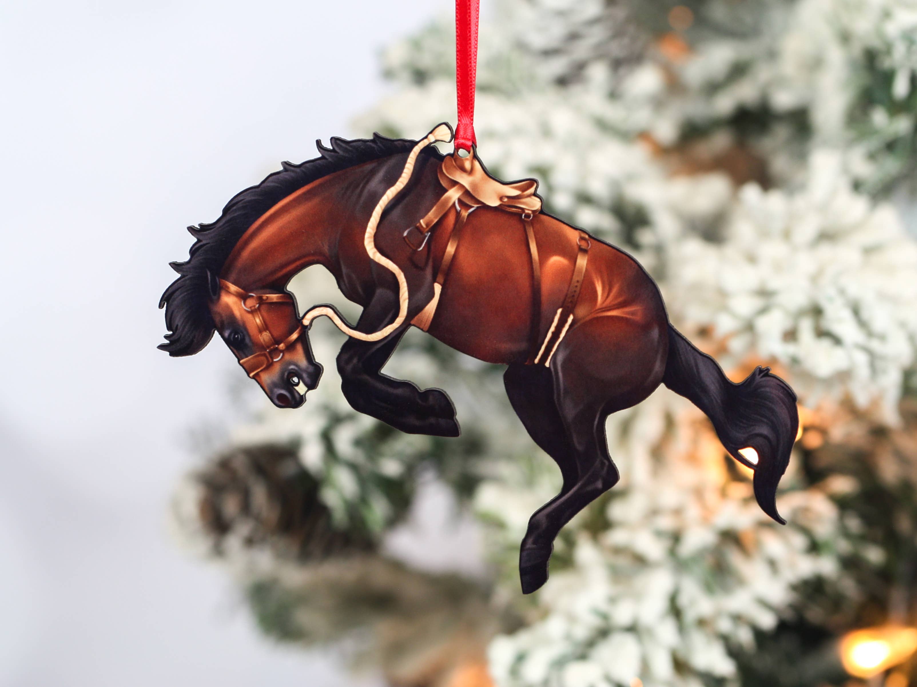 Ornement de Noël cheval de ranch western peint chestnut overo en vente B2B