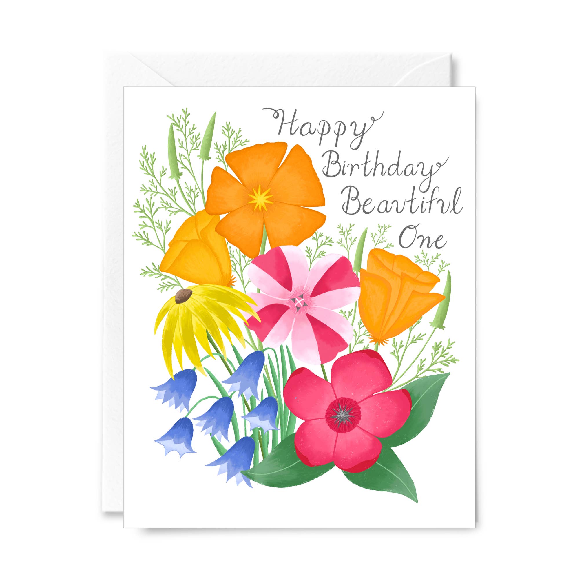 Une collaboration avec le calligraphe de la région de Boston Jan Boyd, cette carte présente des lettres élégamment lettrées Happy Birthday avec une photographie réaliste vibrante de capucines fraîches et de fleurs et de feuilles sur le devant. L'intérieur est vide. Certifié Forest Stewardship Council. Sans acide. 130 # poids. Taille A2 (4.25" x 5.5"). Emballé de manière durable dans un manchon transparent, végétal et compostable.