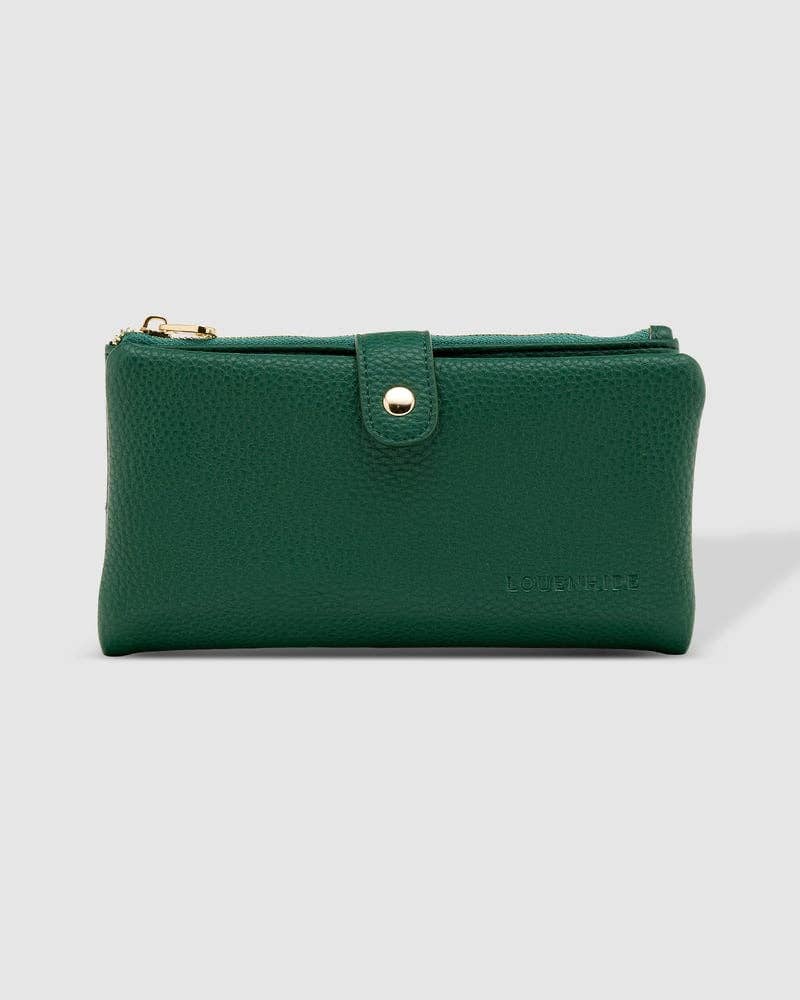 Portefeuille multi-organisateur avec fermeture à languette et poche arrière coulissante. Poche intérieure zippée autour de deux fentes pour cartes de crédit et poches médianes à glissière. Douze emplacements intérieurs pour cartes de crédit, fenêtre d'identité, porte-stylo et pochettes coulissantes. 7 x 3,75 x 1,5 po
