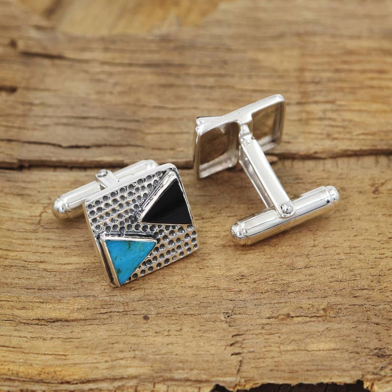 Boutons de manchette bleu à carreaux argentés en vente B2B