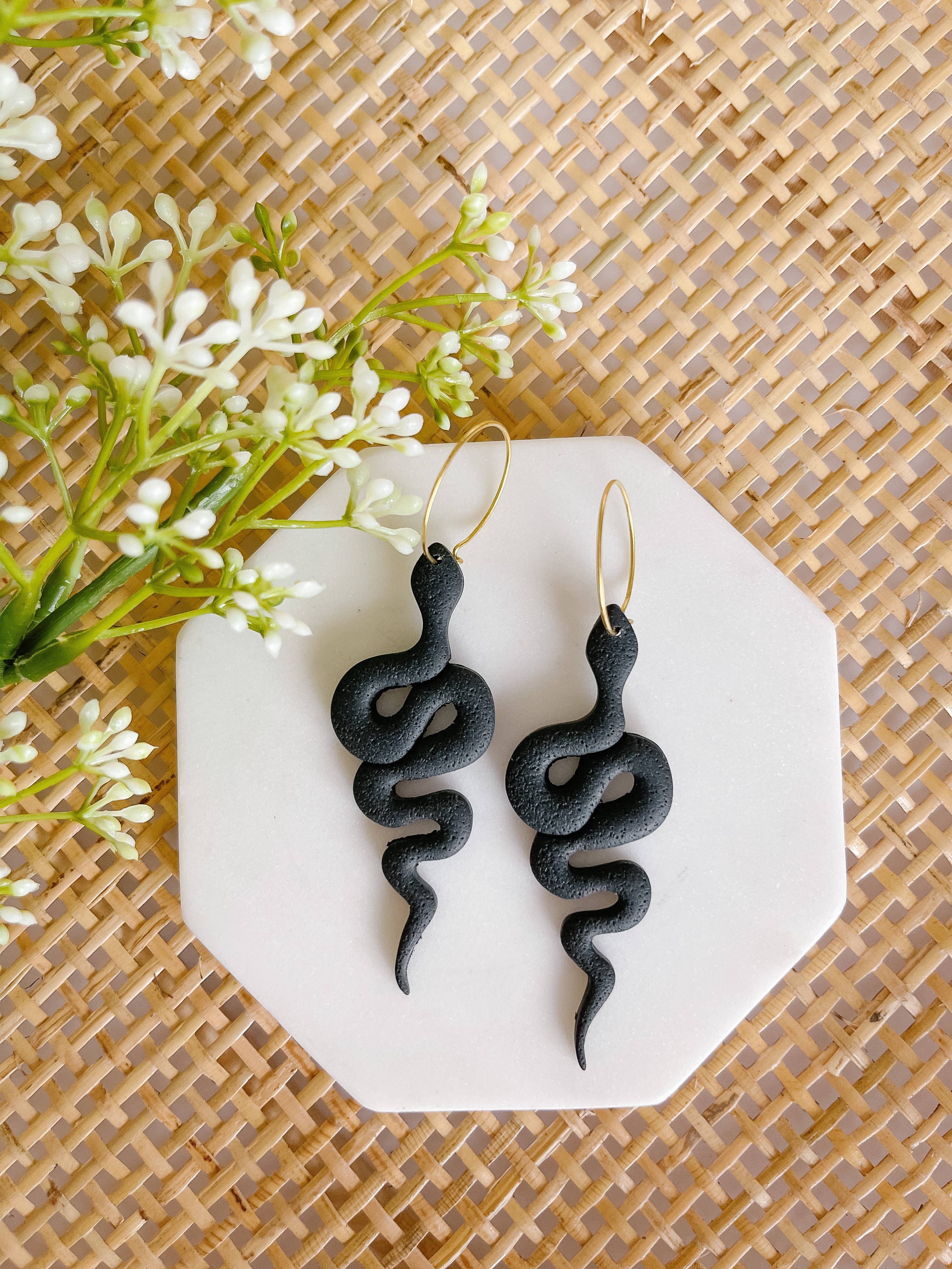 Ces boucles d'oreilles serpent en forme de fouet sont fabriquées en bois découpé au laser et possèdent des crochets en acier inoxydable. Ces boucles d'oreilles sont super légères à porter et superbes. Ils peuvent faire partie de votre tenue de sorcière ou d'Halloween, ou tout simplement pour les amateurs de serpents ! -Représente une image de serpent antique -Bois de bouleau de 1/8" d'épaisseur découpé au laser -L'arrière du bois est peint en noir -Crochets d'oreilles en acier inoxydable -Dimensions de l'image 2,1 po x 1,1 po -Livrée sur une carte de boucle d'oreille