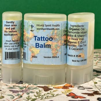 Ces beurres pour tatouage sont présentés en boîtes sans languette. Si vous recherchez des boîtes avec languette, vous pouvez acheter un lot de 6 boîtes ou plus, disponible également dans notre boutique. Ces boîtes de 14 g sont parfaites pour les artistes tatoueurs. Notre beurre de tatouage certifié biologique est fabriqué artisanalement en petites quantités. Nous obtenons sa consistance parfaite grâce à un beurre de karité équitable, biologique et riche, et au mélange d’herbes biologiques de 'Ohana infusé dans de l’huile d’olive. Utilisez cette crème d’origine végétale immédiatement après votre séance de tatouage et pendant plusieurs semaines pour aider à guérir, embellir et nourrir votre peau tatouée, neuve ou ancienne. *Ces boîtes ne possèdent pas de languette* Ingrédients : Beurre de karité équitable biologique, huile d’olive biologique, herbes biologiques 'Ohana, vitamine E, (huile essentielle* uniquement dans la crème lavande) *Biologique Disponible en version sans parfum et lavande UN TESTEUR CORRESPOND À UNE BOÎTE DE 14 G