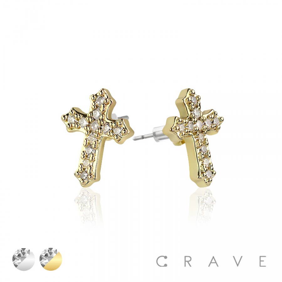 Boucles d'oreilles en forme de croix trempées dans l'or cubique - Taille : longueur de chute de 0,5 pouces - Poteau en argent sterling - Conçu en Corée - Conforme au plomb **Usage réservé aux adultes**