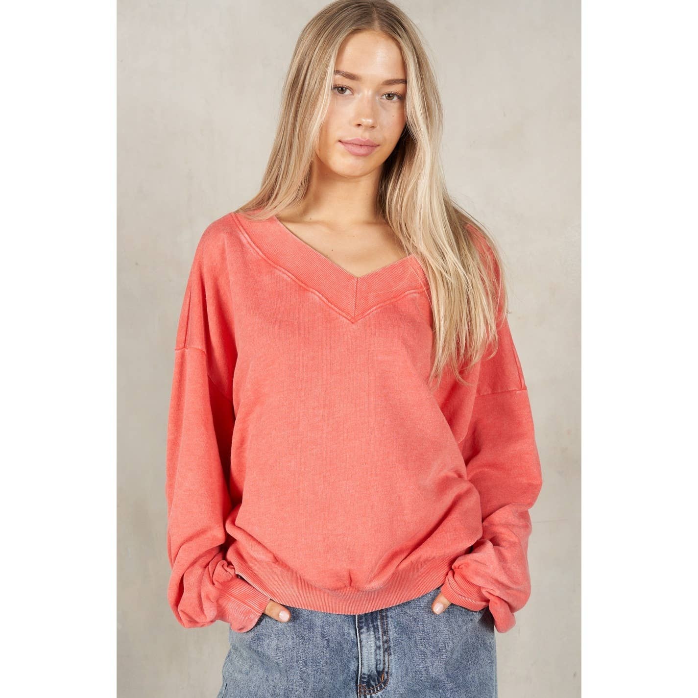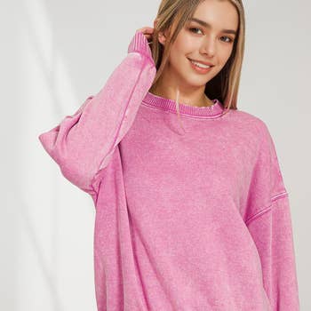 Notre best-seller ! Sweat-shirt surdimensionné en tissu cordé ultra doux et vintage lavé. Caractéristiques : - Col rond - Coupe surdimensionnée - Encolure ras du cou, poignets et ourlet côtelés Chaque pièce est teinte individuellement, veuillez donc noter qu'il peut y avoir des variations de couleur d'une pièce à l'autre. Parfois, il peut y avoir une légère traînée au niveau de l'épaule en raison du processus de teinture unique, qui est courant. 100 % coton Polaire filaire. 320 g/m² Taille ouverte. 6 minimum.