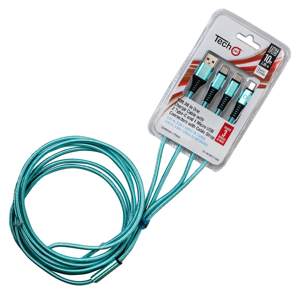Câble de recharge 3 en 1 tressé de 3,05 m avec présentoir au sol