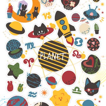 Autocollant circulaire de 3x3" avec un système solaire stylisé en dessin animé. Montrez votre fierté de passionné d'espace en le collant sur toutes vos affaires ! Fabriqué en vinyle résistant aux intempéries et au lave-vaisselle, et protégé contre les UV pour rester éclatant jusqu'à 4 ans.