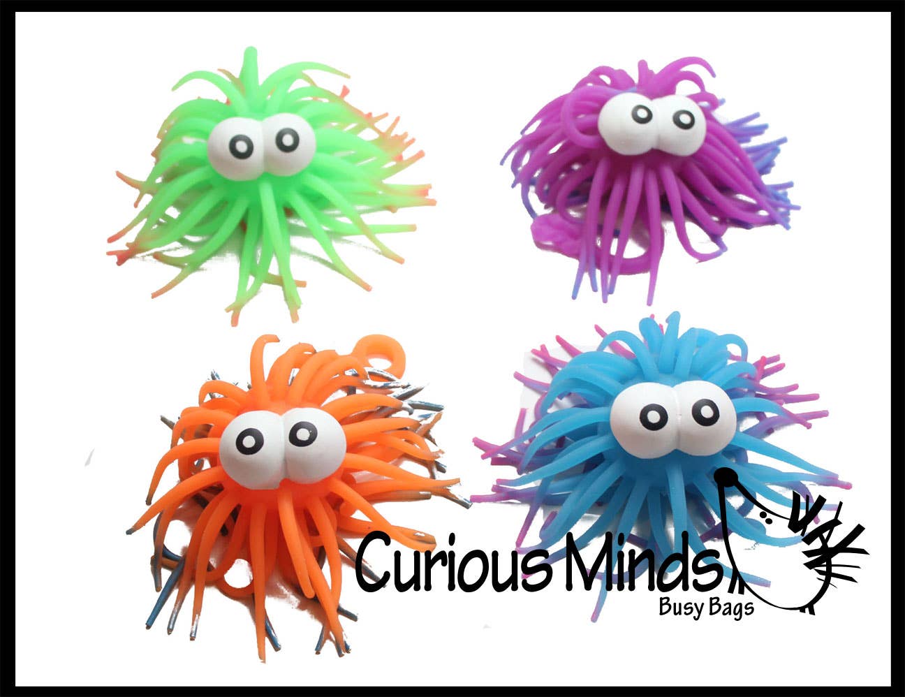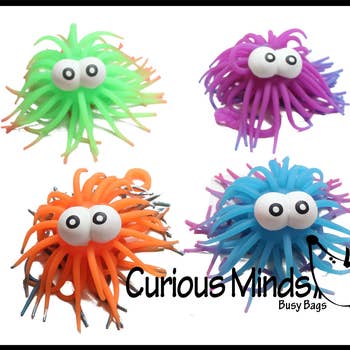 • Grandes balles gonflables décorées avec des yeux amusants • Fabriquées en caoutchouc souple avec des poils extensibles, idéales pour s'occuper les mains • Styles assortis • Vendues par douzaine dans un sac en polyéthylène • À partir de 3 ans