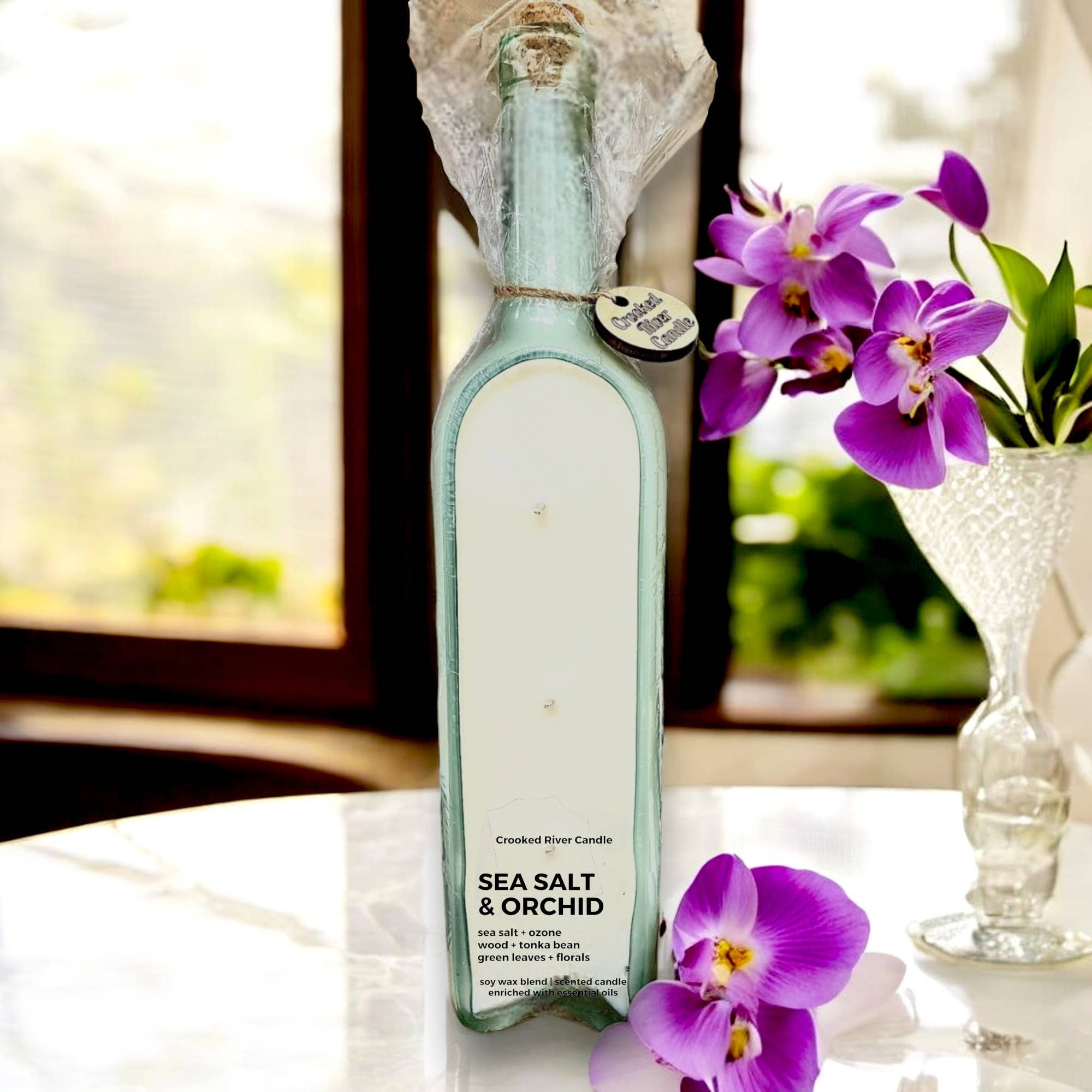 Les bouteilles de vin en verre recyclé sont remplies de 18 onces de notre mélange de cire de soja et ont 3 mèches en coton, sans plomb et non toxiques. Les couleurs et la forme des récipients peuvent varier et ne peuvent pas être sélectionnées. Les couleurs sont transparent, vert clair et vert foncé. Lors de l'achat de 2 ou plus, nous essaierons de vous offrir une certaine variété de couleurs. Nos bougies en bouteilles de vin sont emballées sous film rétractable pour l'exposition et la protection pendant le transport et sont ornées d'un cercle en bois signature Crooked River Candle. Elles peuvent être exposées couchées ou debout. Taille approximative 12"x3"x2.5" Temps de combustion approximatif 100+ heures Notes de parfum : Ananas, Palmier, Anis, Feuilles Vertes, Sucre, Sauge -Bougie en mélange de soja à combustion propre -Mélange premium de parfums et d'huiles essentielles (sans phtalates) -Récipient réutilisable et unique pouvant être réutilisé comme vase, porte-stylo, pot de fleurs, etc. -Vegan & Casher | Sans cruauté | Écologique | USA Parfum toute l'année | Parfum de luxe | Cadeau de boutique | Bougies de décoration intérieure uniques | Bougie de déclaration | Cadeaux pour elle | Tropical