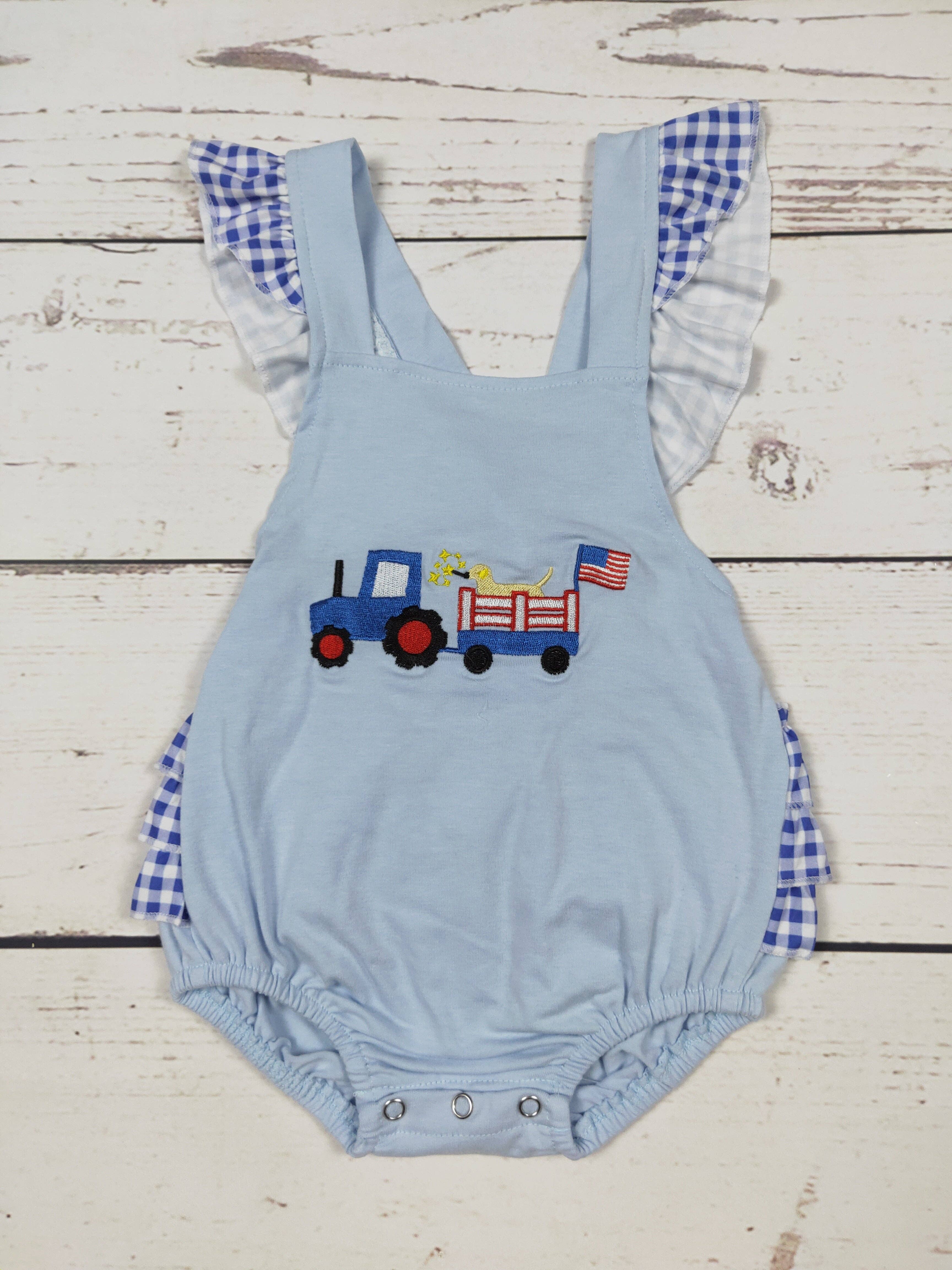 Sunsuit Unisexe 100 % coton (chèque) Entièrement doublé en 100 % coton Élastique dans l'ouverture des jambes Pronotements à l'entrejambe Boutons aux bretelles Notre maillot unisexe disponible en plusieurs couleurs. Il est entièrement doublé, avec boutons-pression à l'entrejambe et boutons sur les bretelles. Il a également un élastique dans les ouvertures des jambes. Ce serait super mignon pour le 4 juillet, et d'autres rassemblements d'été.